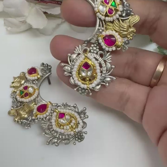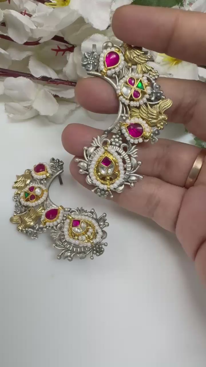 Elevate your ethnic elegance with our handcrafted Pachi Kundan Ear Cuffs, designed to make a royal statement without the need for piercings. Intricately detailed with uncut kundan stones and finished with dainty pearl drops, these earcuffs curve gracefully along your ear to add a regal charm to any look.