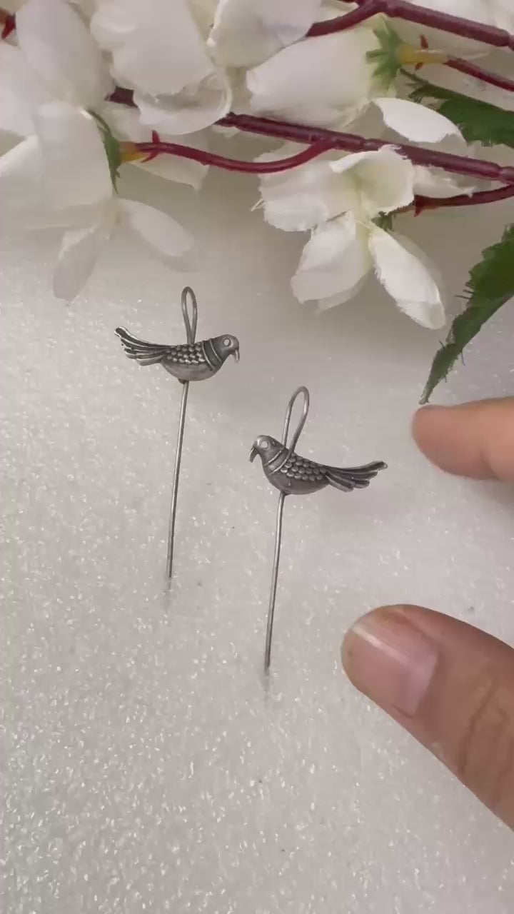 These oxidised bird needle earrings add a whimsical charm to your ethnic or Indo-western outfits. Lightweight, artistic, and handcrafted for the free-spirited soul.