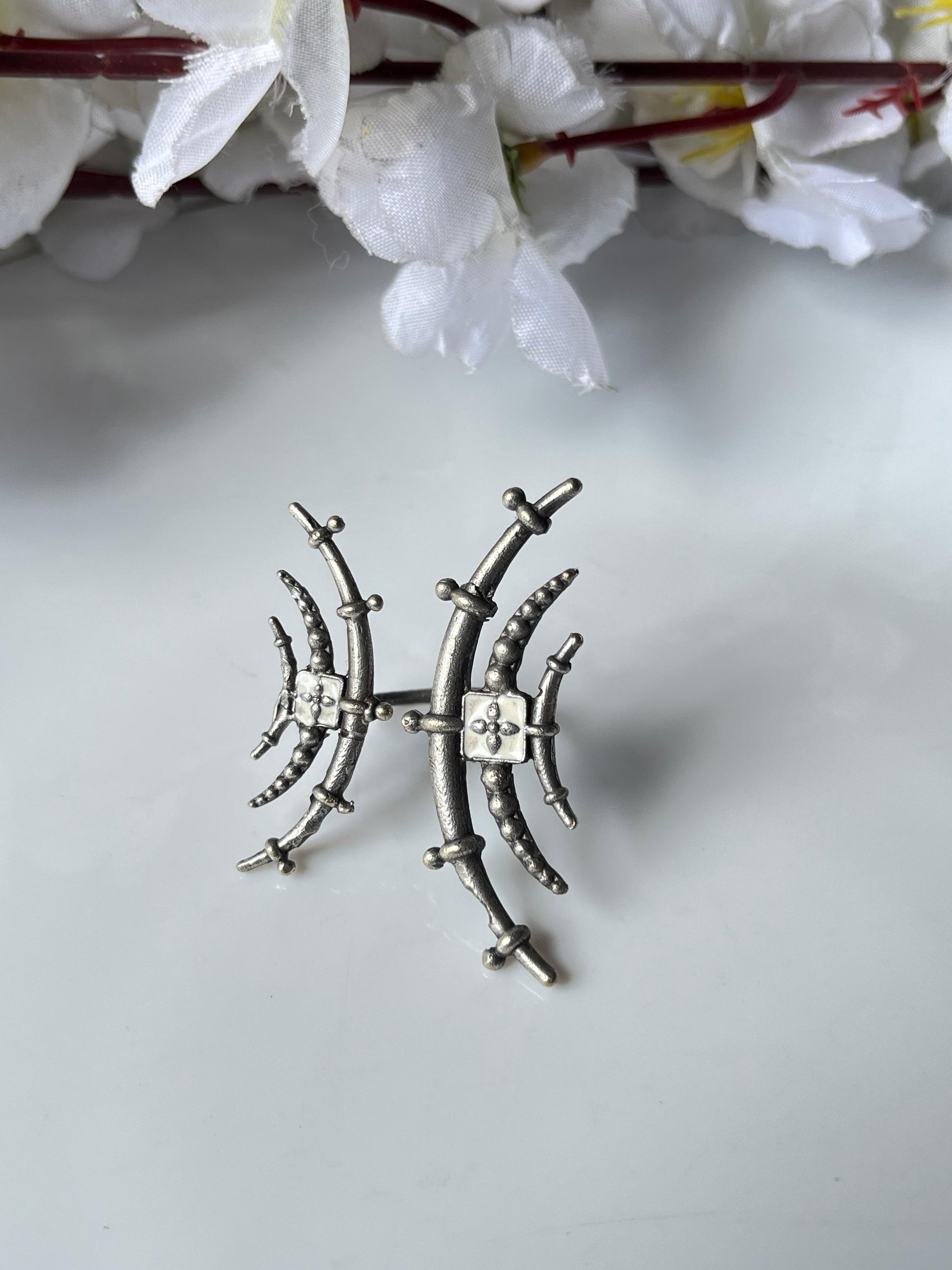 ✨ Add a bold edge to your style with this oxidized silver adjustable ring. Its unique tribal-inspired design makes it a perfect statement piece for both traditional and contemporary looks.