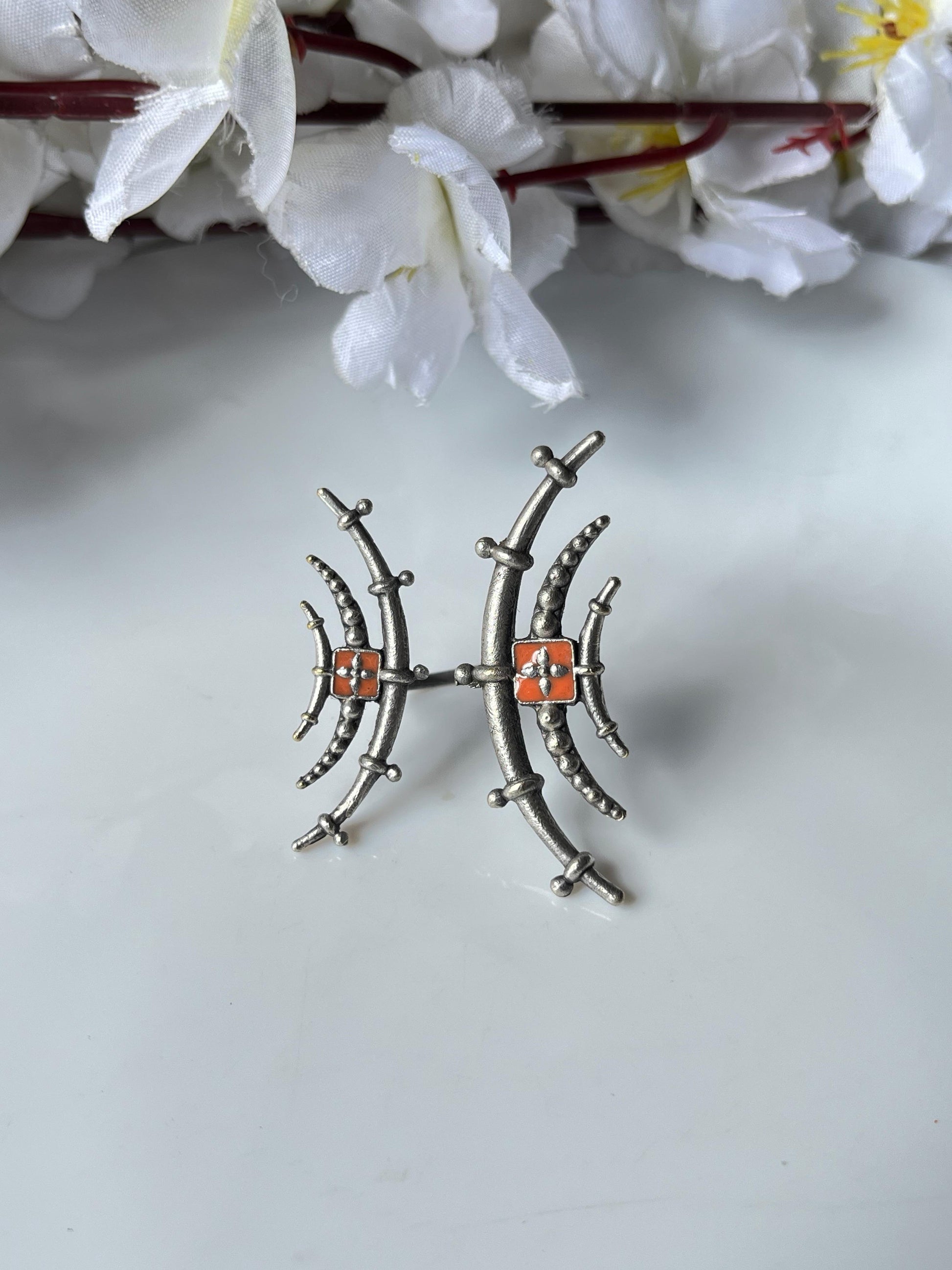 ✨ Add a bold edge to your style with this oxidized silver adjustable ring. Its unique tribal-inspired design makes it a perfect statement piece for both traditional and contemporary looks.