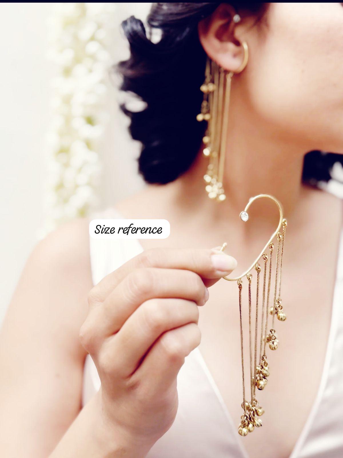 long ear cuff with golden chains and ghungroos, perfect to elevate your festive, bridal, or traditional ensemble.