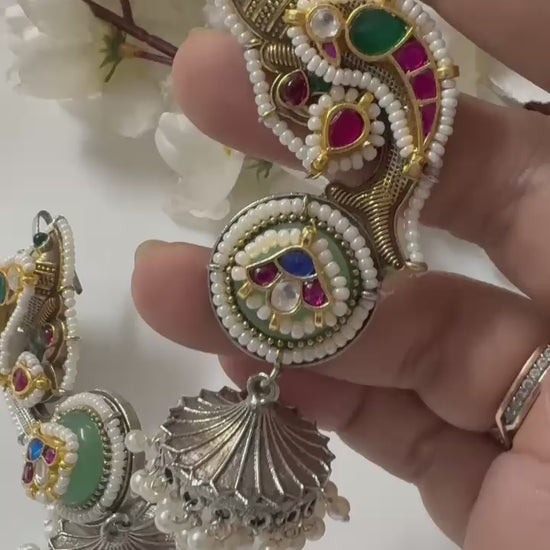 Handcrafted with precision, these pachi kundan dualtone earcuffs are a blend of heritage and modern aesthetics, offering a bold yet elegant look that complements both ethnic and Indo-western outfits.