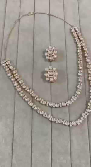 ✨ Elevate your look with this 2-layer carat-plated Moissanite necklace set, designed to radiate brilliance at every angle. Perfect for weddings, festive celebrations, and special evenings.