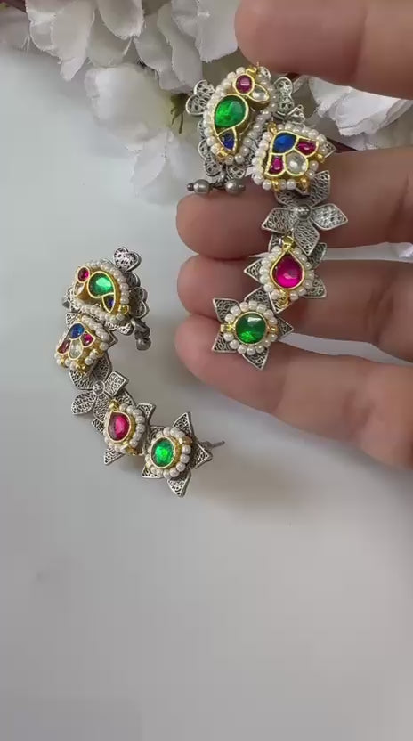Adorn yourself with these handcrafted Kundan gold plated earrings, designed with intricate detailing and a royal finish – perfect for festive and wedding looks.