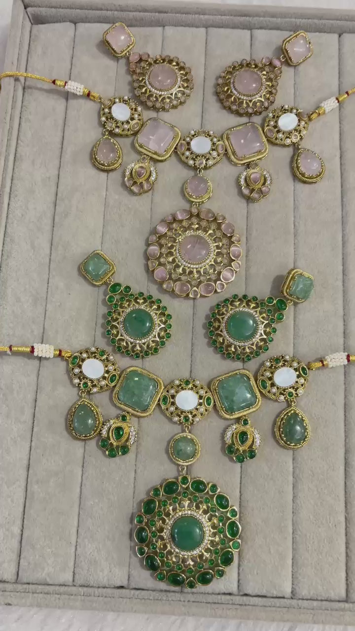 Emerald Royale Polki Necklace Set