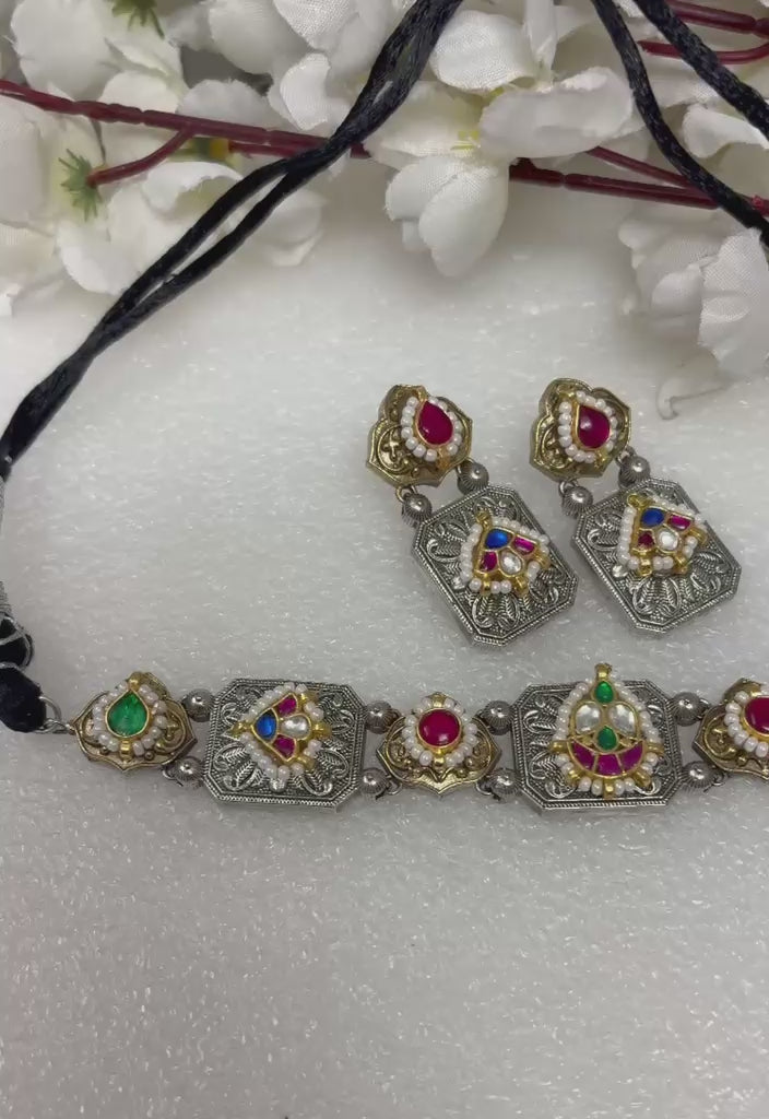 Folk Heritage Oxidised Kundan Necklace Set