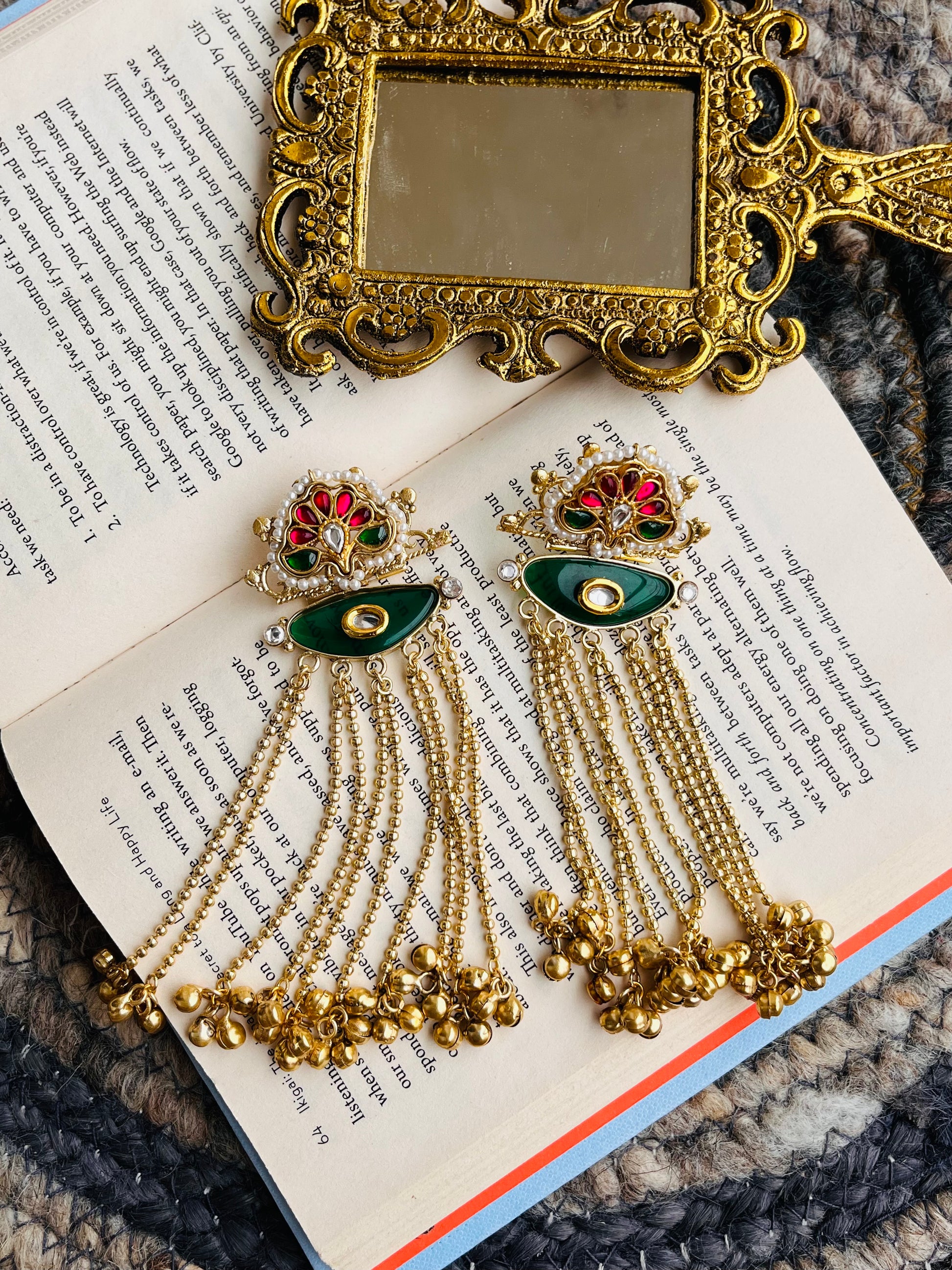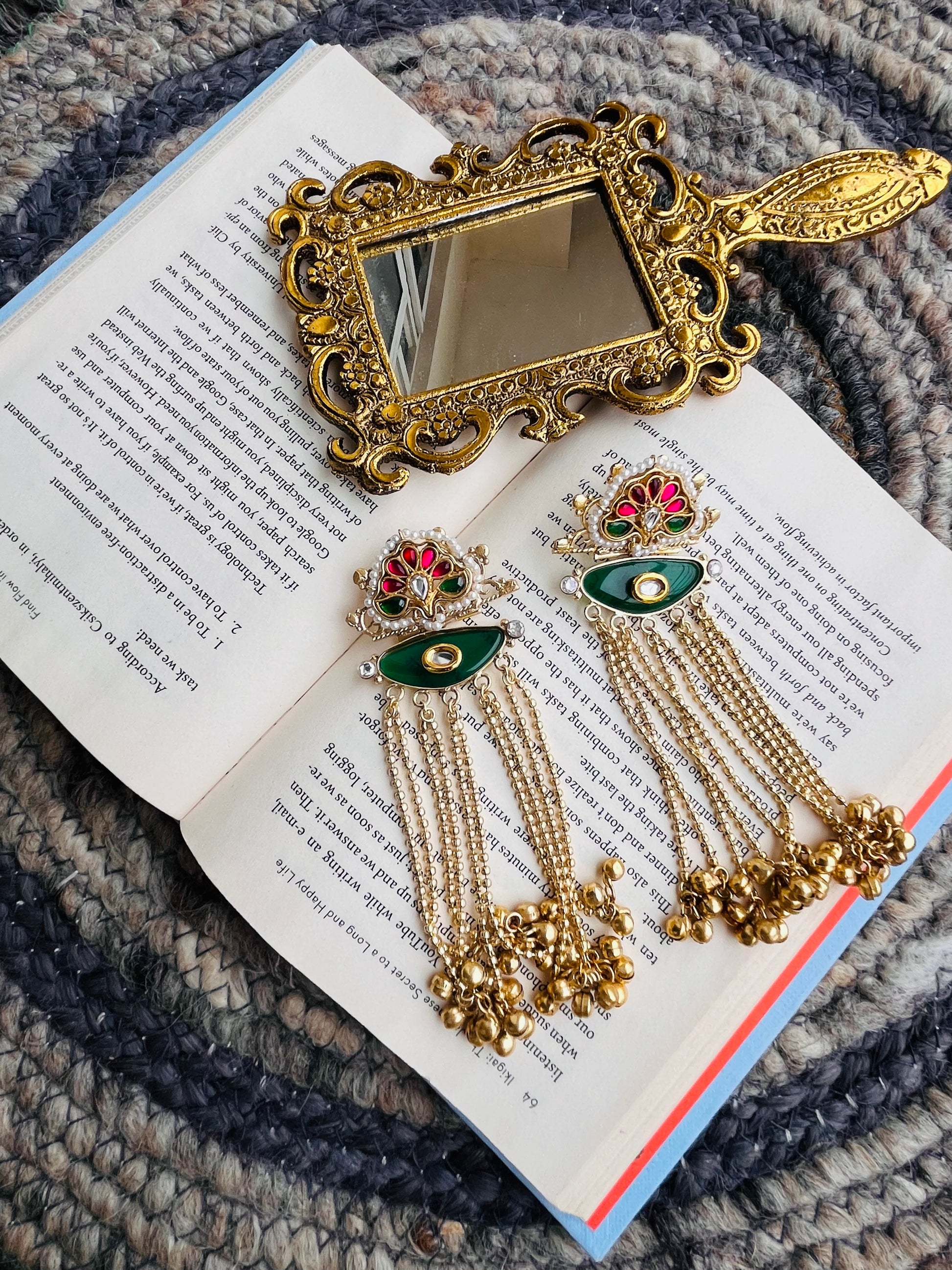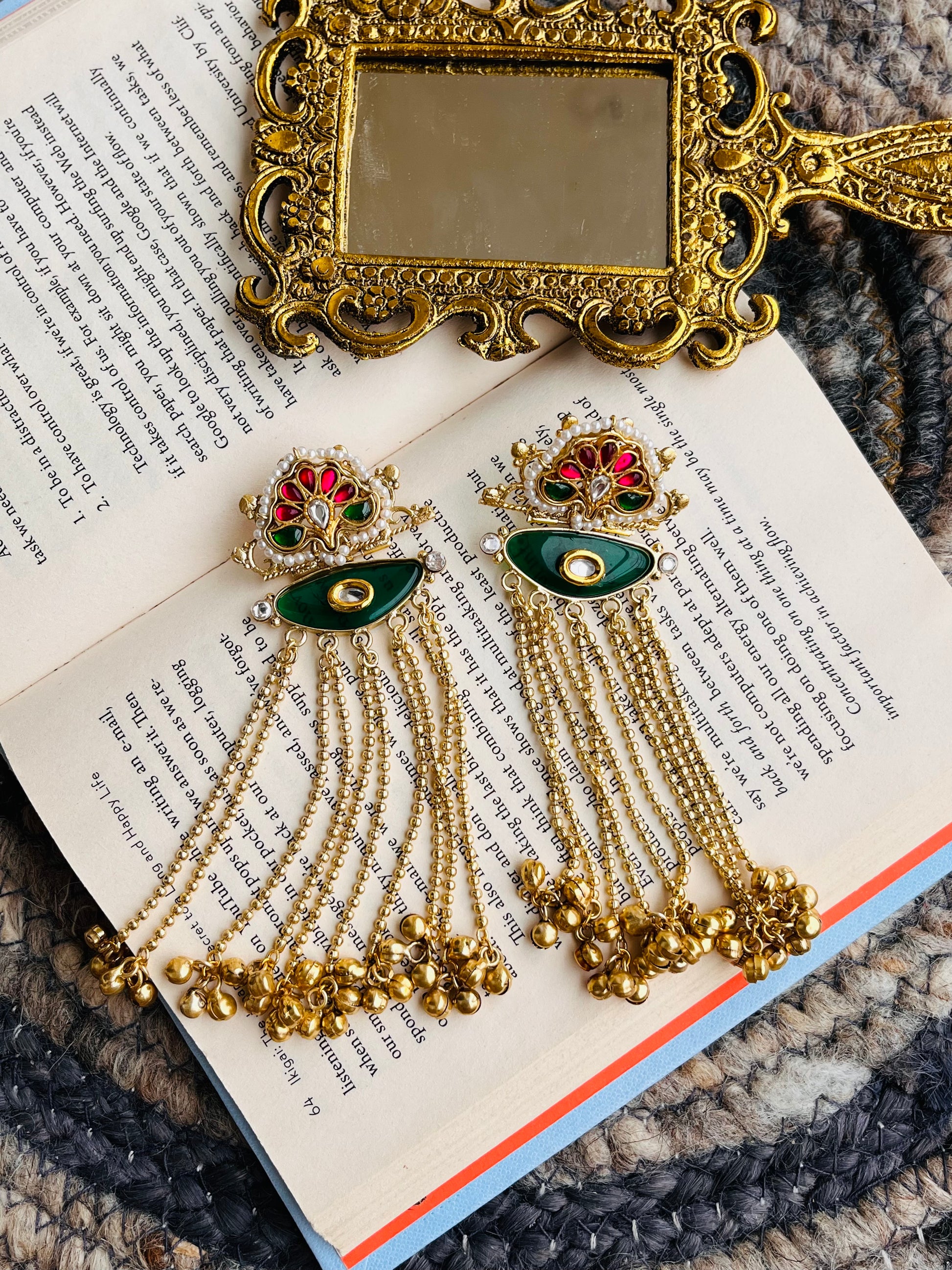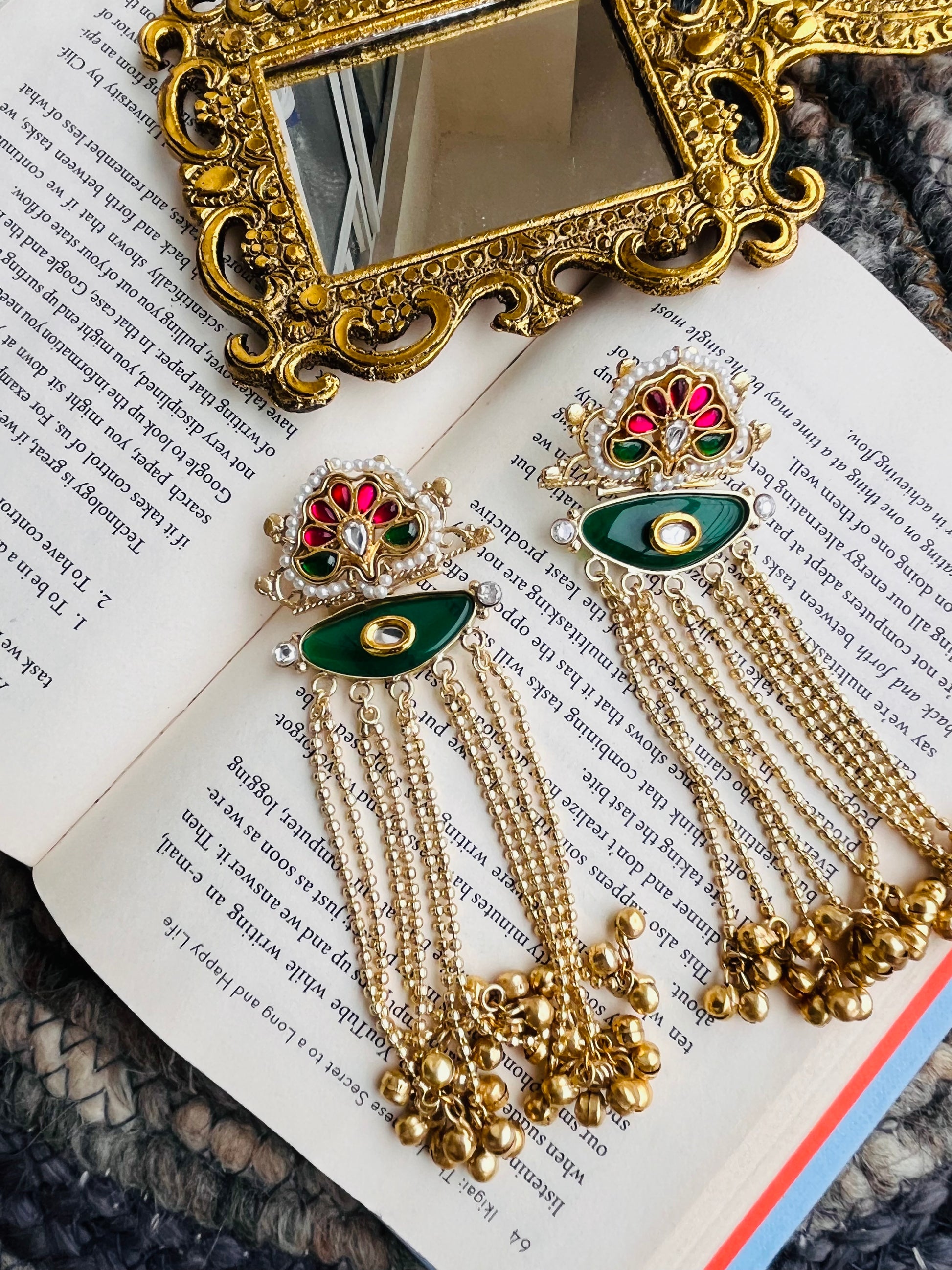 Green Enamel & Kundan Tassel Earrings🦋🦋