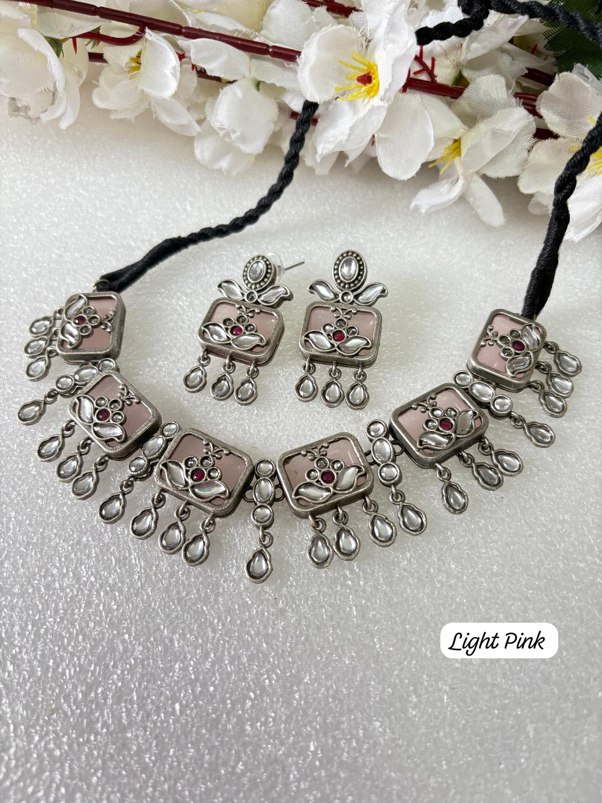 This handcrafted Silver Oxidised Necklace Set brings together traditional artistry and modern boho vibes.