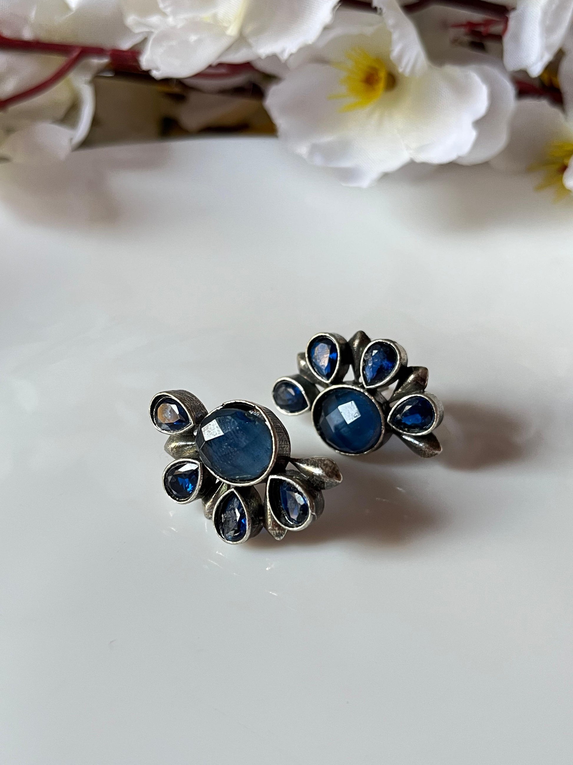 Handcrafted Oxidised Studs with Purple Gemstone Set of 3 combo