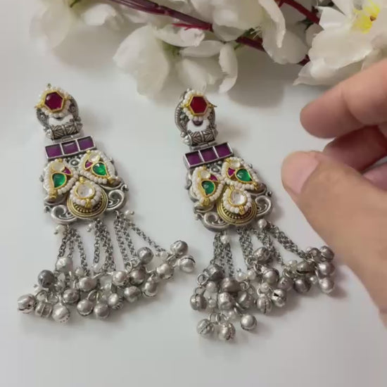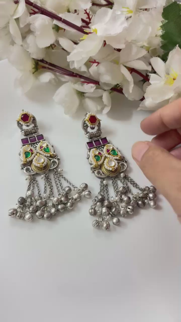 Inspired by Rajasthani heritage, these Pachi Kundan earrings feature intricate detailing and meenakari work, making them a timeless piece for weddings and celebrations.