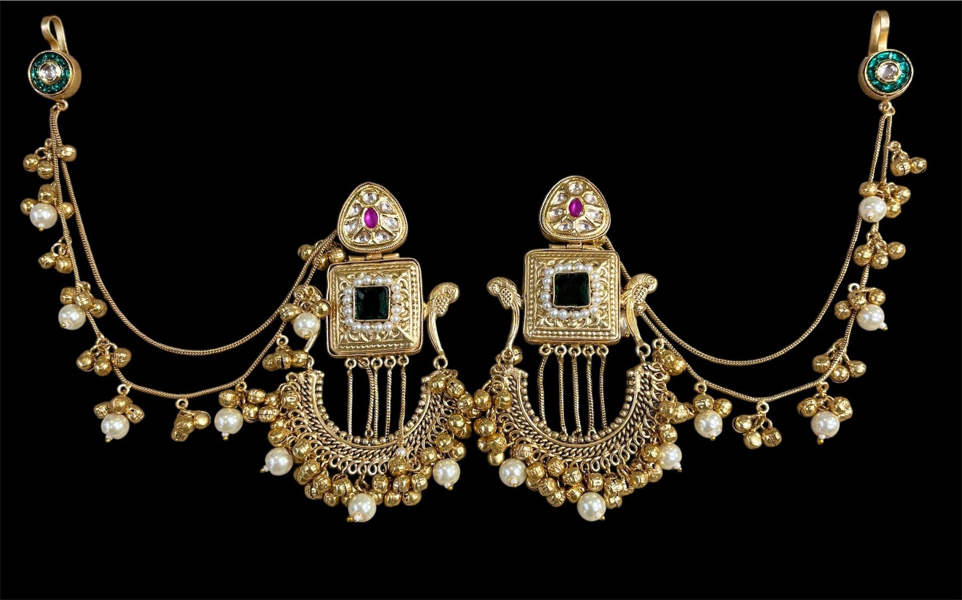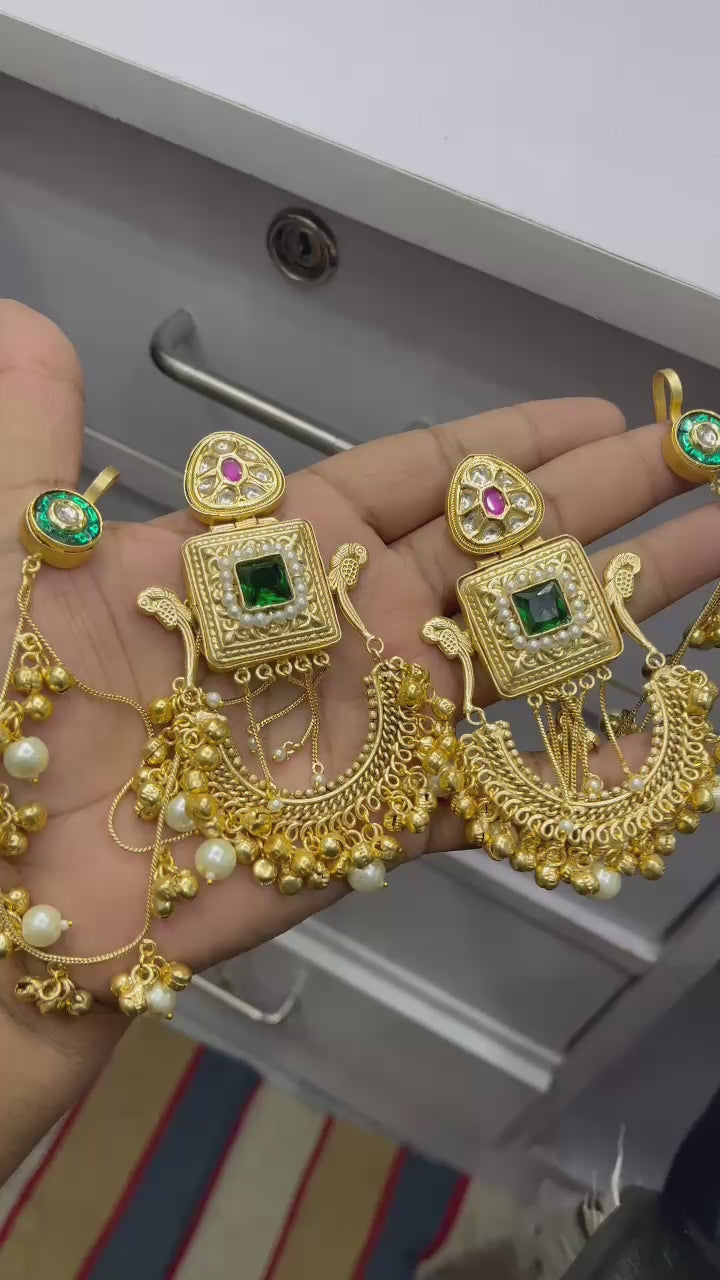 Kundan Earrings with Red Stone & Ghungroo Pearl Chains