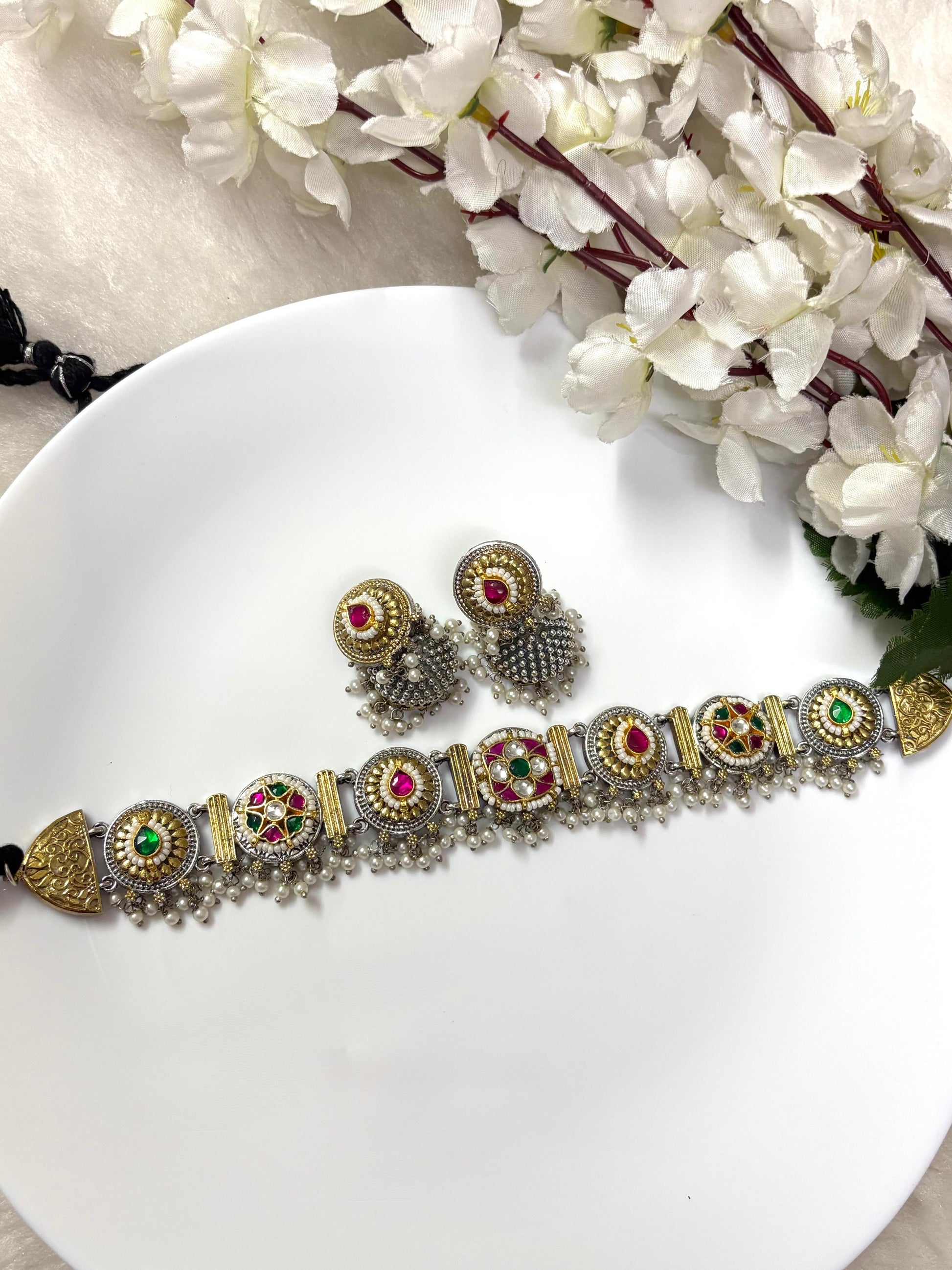 Kundan Fusion Choker Set with Earrings πππ«°π»