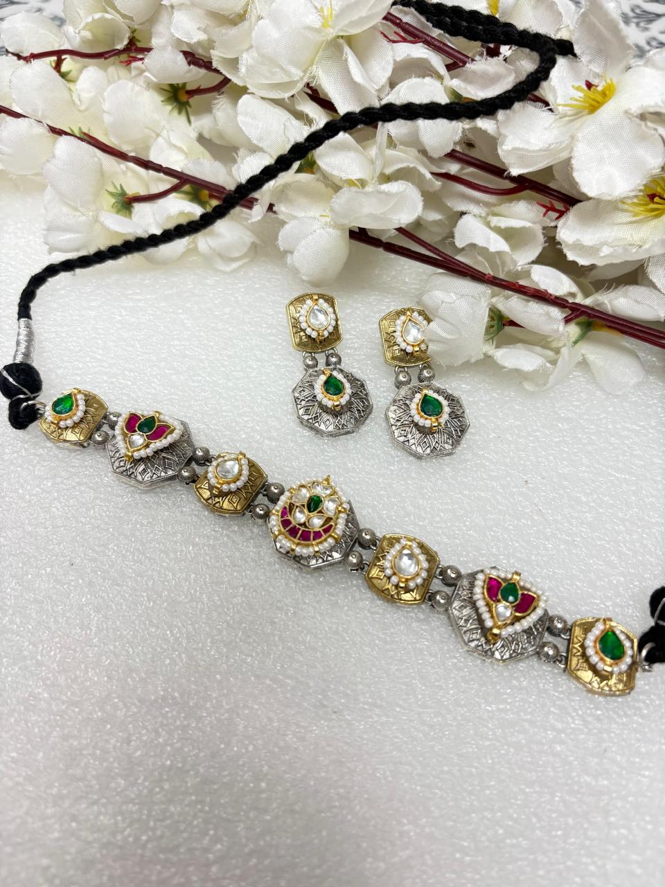 This one-of-a-kind Kashmiri-inspired choker set features a fusion of tribal motifs, pearl chains, and bold enamel work. Ideal for festive wear, weddings, or even with Indo-western outfits to create that unforgettable look.