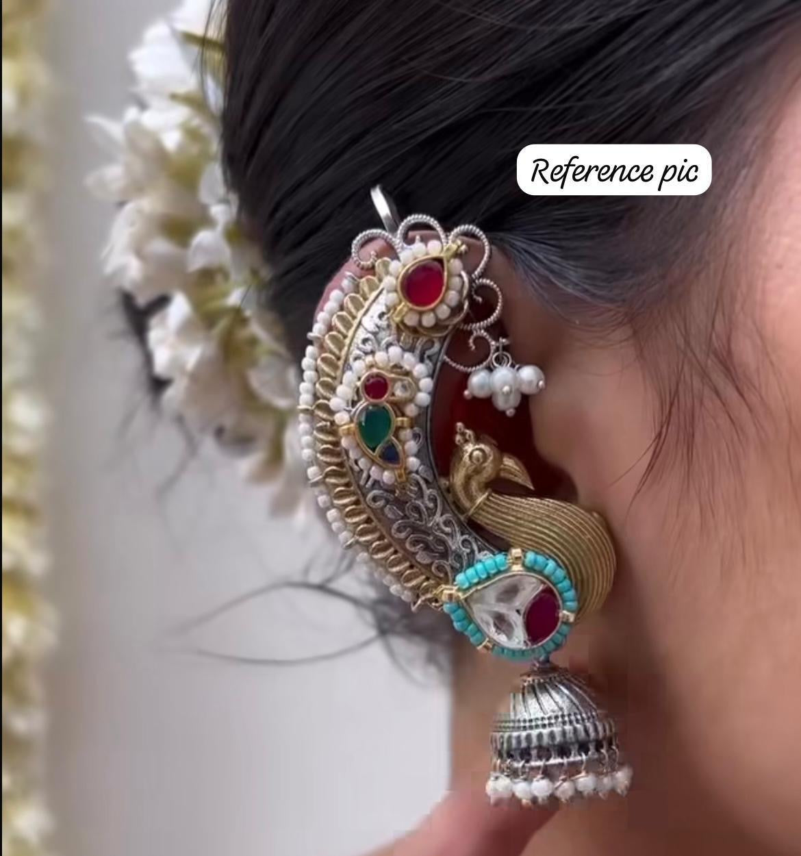 Celebrate tradition with a twist. These vibrant handcrafted ear cuffs blend classic Meenakari work with modern statement design – perfect for every festive sparkle.