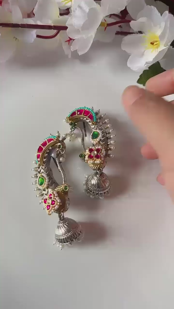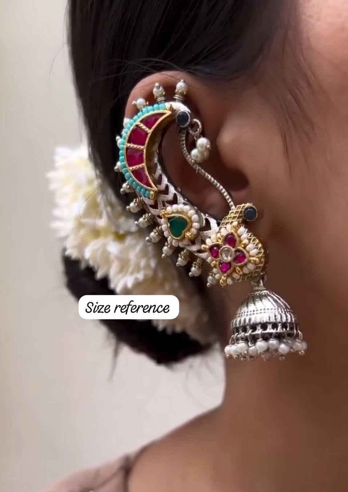 Celebrate tradition with a twist. These vibrant handcrafted ear cuffs blend classic Meenakari work with modern statement design – perfect for every festive sparkle.