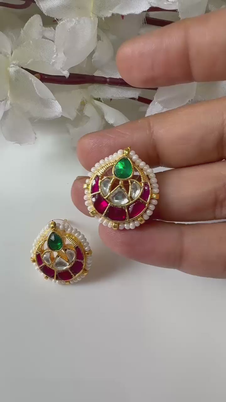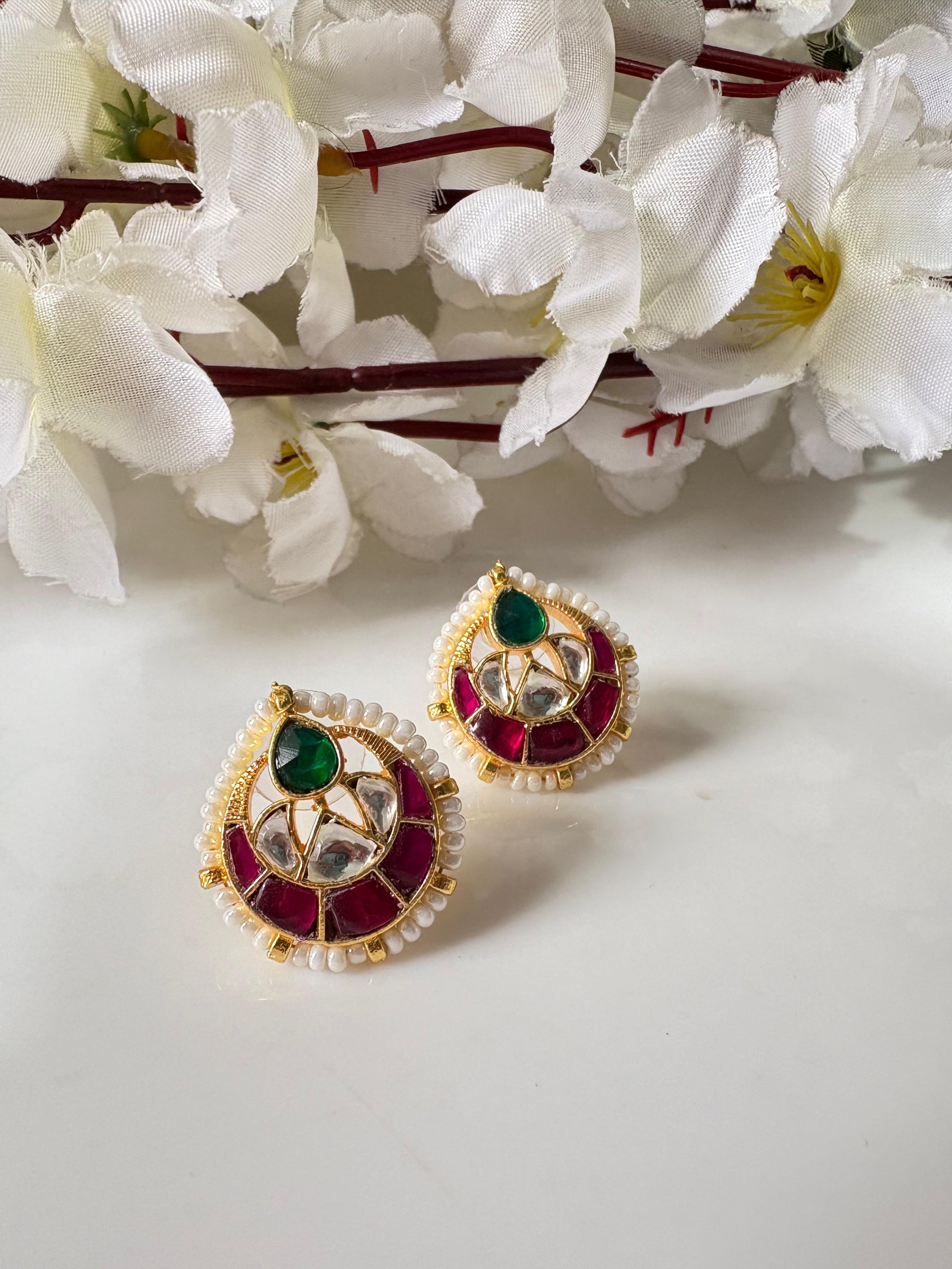 Handcrafted multicolor kundan studs with pearl detailing—perfect for festive celebrations, weddings, or traditional outfits that need a pop of vibrant elegance.