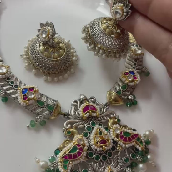 A timeless blend of tradition and trend, this Kundan Fusion Necklace adds royal charm to your festive look.