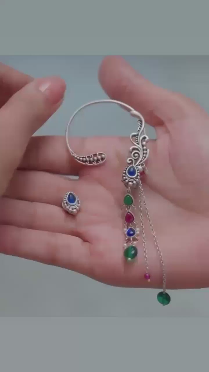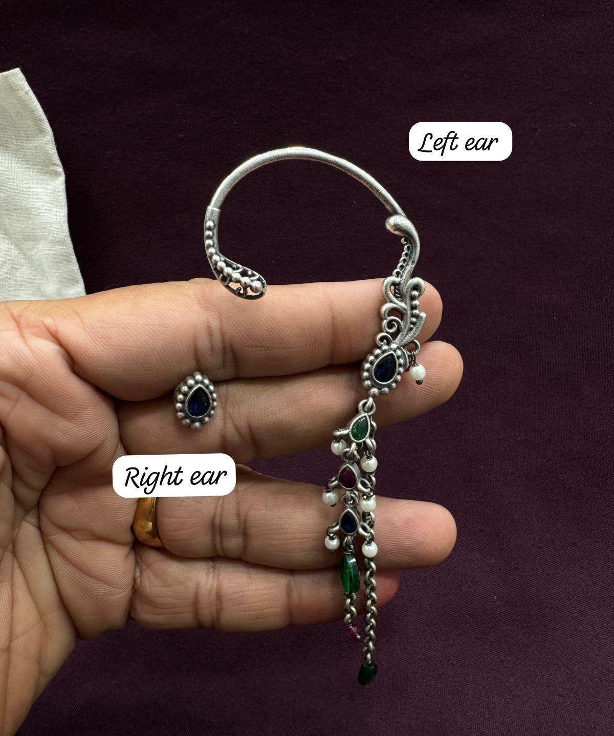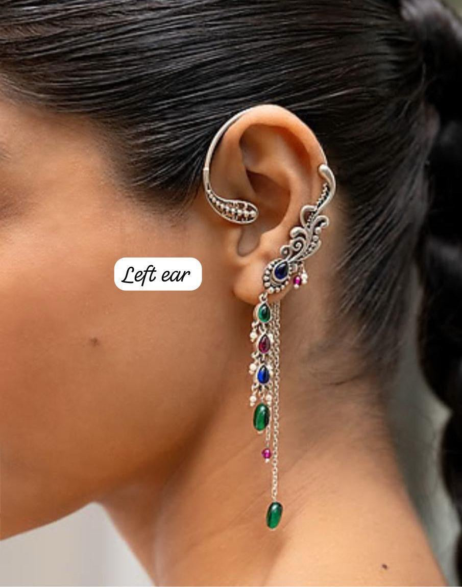 Oxidised Floral Ear Cuff with Dangler Chains
