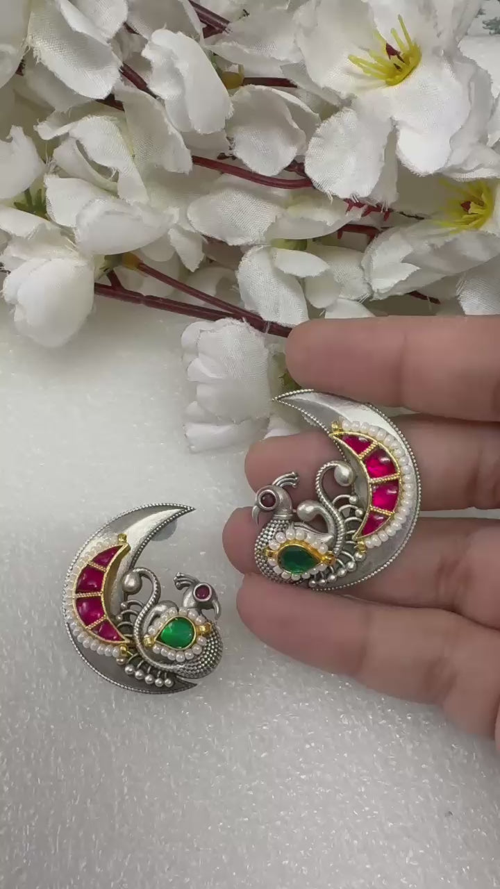 Peacock Inspired Oxidised Pachi Kundan Earrings