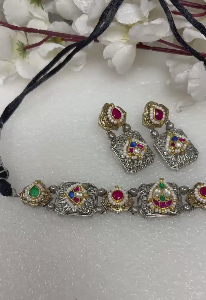 Pearl Meenakari Oxidised Choker Set🦋🦋