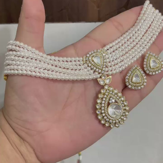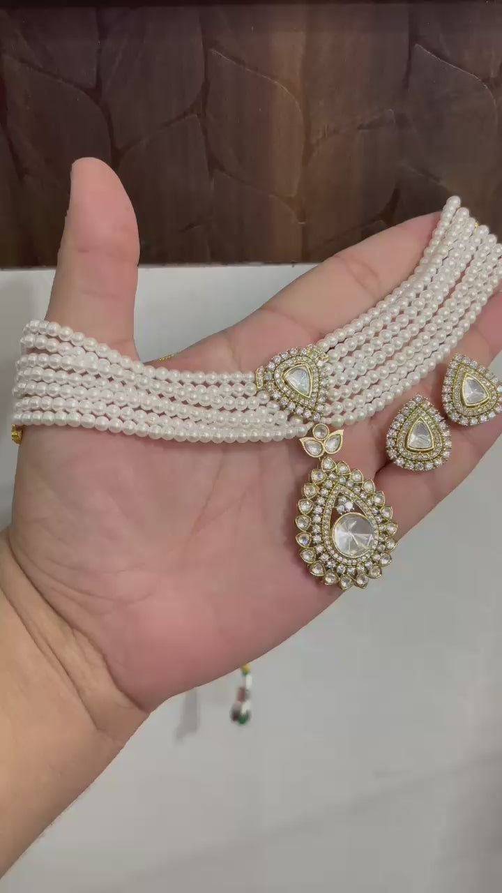 👑 A stunning blend of classic pearls and sparkling stones, this necklace set is designed to give you that royal glow. Pair it with sarees, lehengas, or fusion wear for a majestic look.
