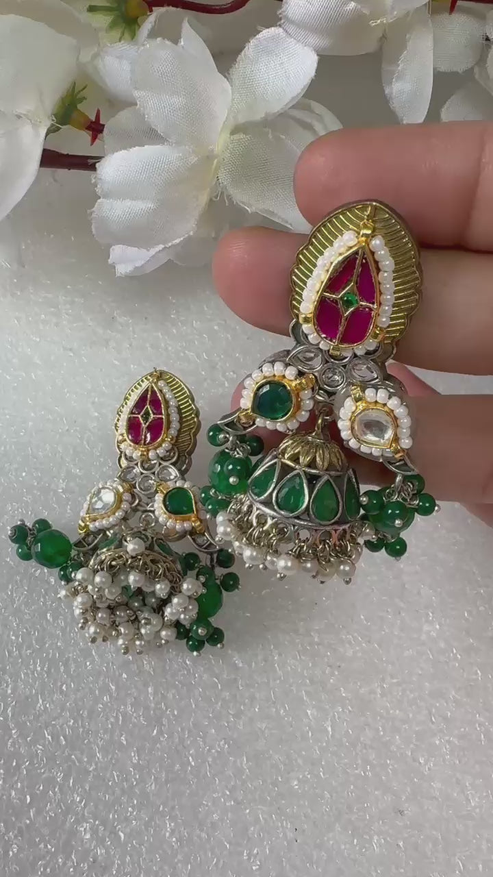 Royal Green & Ruby Meenakari Kundan Jhumkas