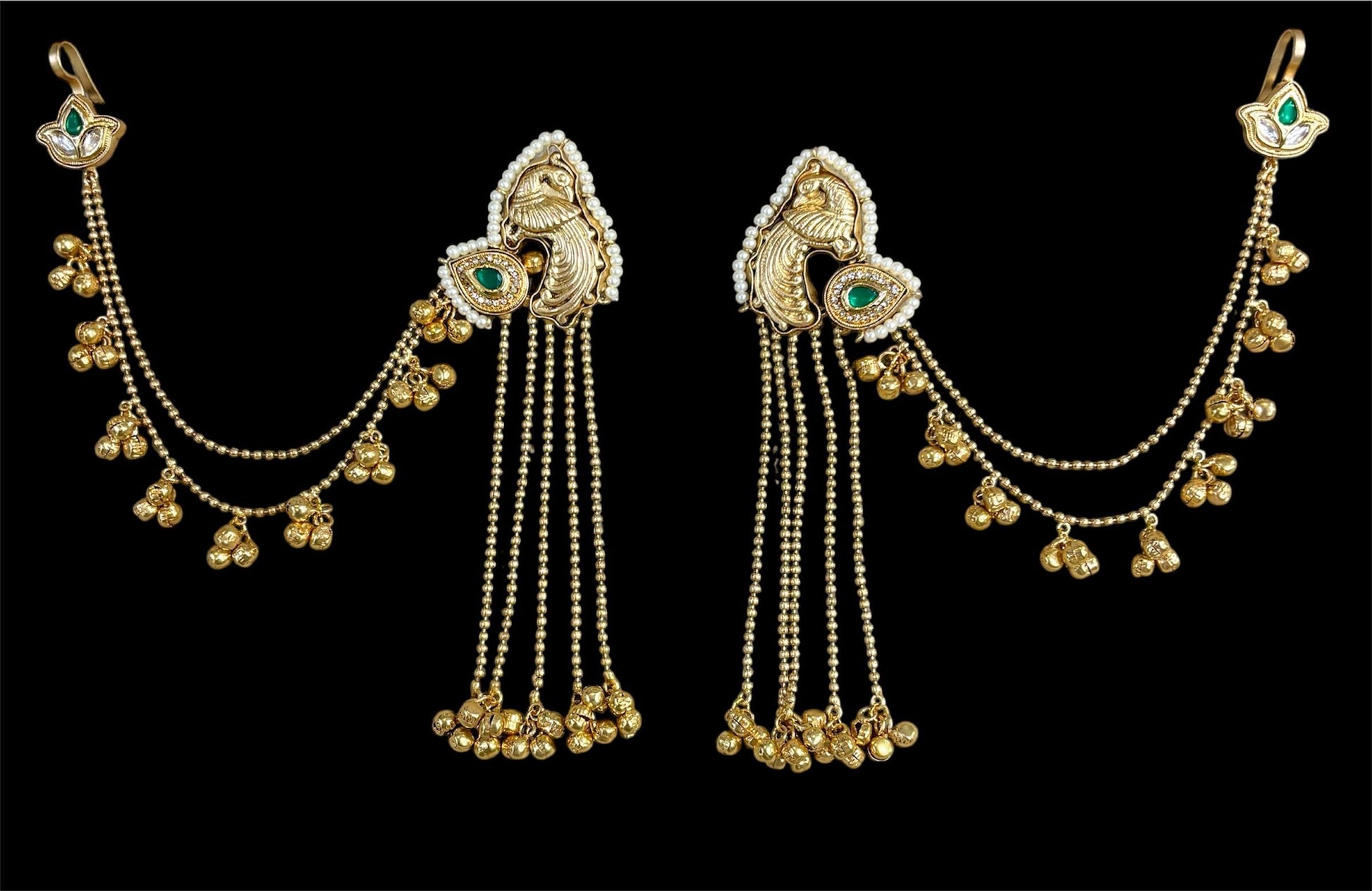 Handcrafted to perfection, these earrings feature peacock-inspired motifs, intricate beadwork, and traditional jhumka-style chains for a graceful ethnic finish.