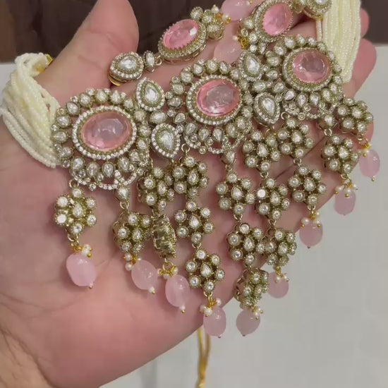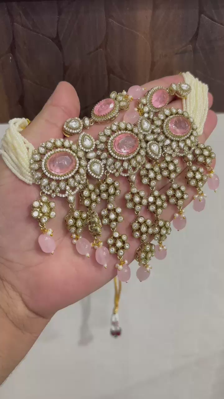 ✨ Add a touch of royal grandeur with this breathtaking necklace set featuring bold emerald-green stones, intricate Polki detailing, and cascading pearl droplets. Perfect for weddings, festive occasions, and timeless heirloom looks.