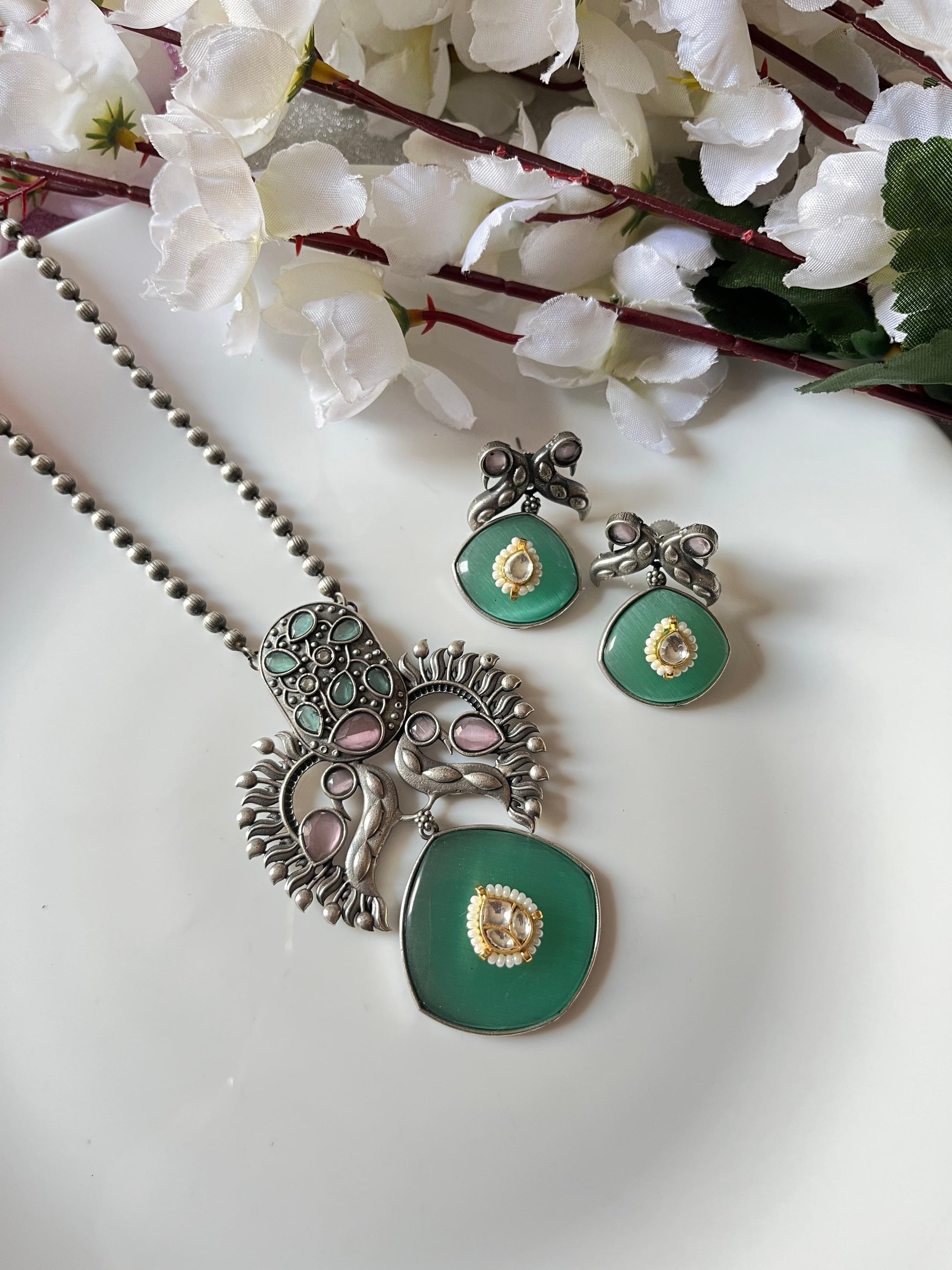 Vibrant Meenakari Peacock Pendant Necklace Set