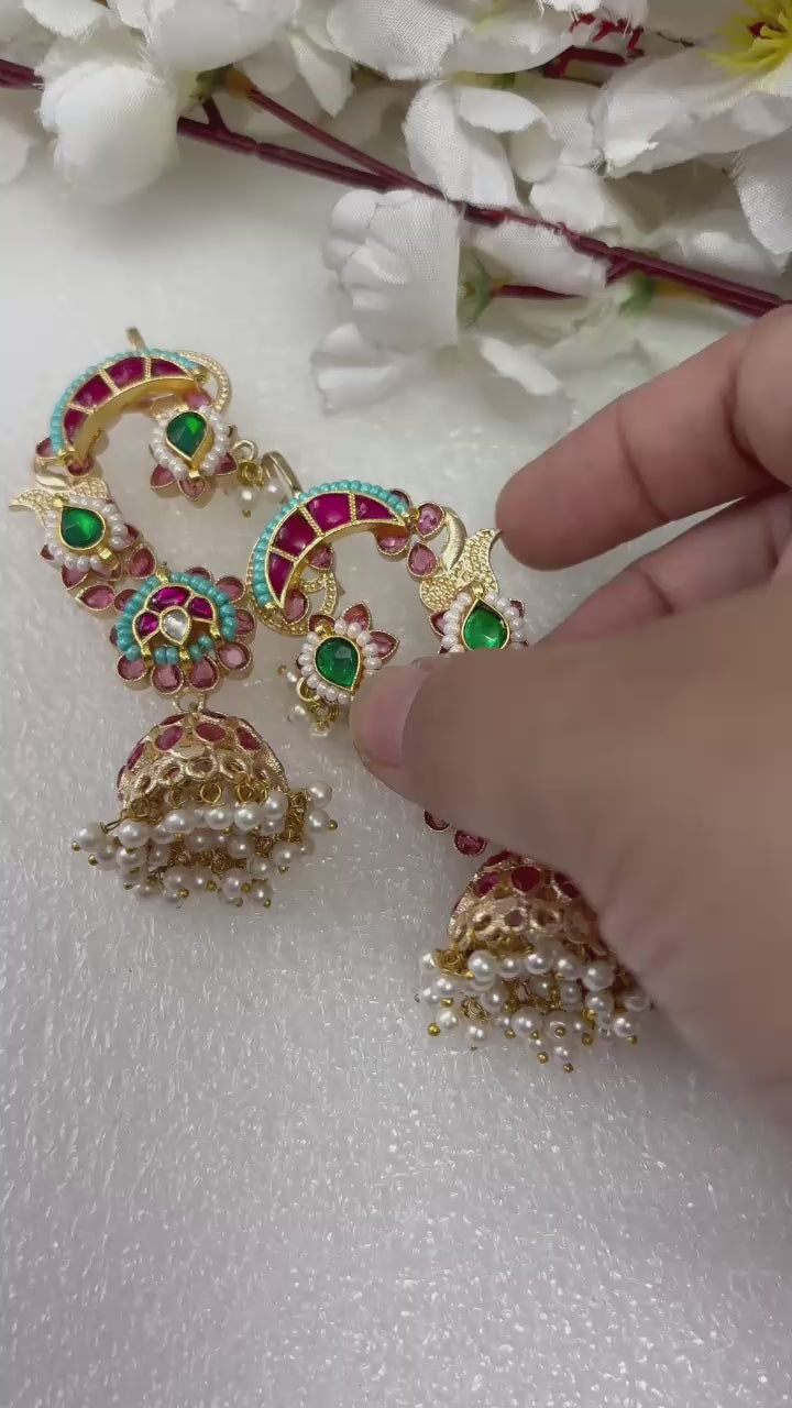 Vibrant Pachi Kundan Earrings