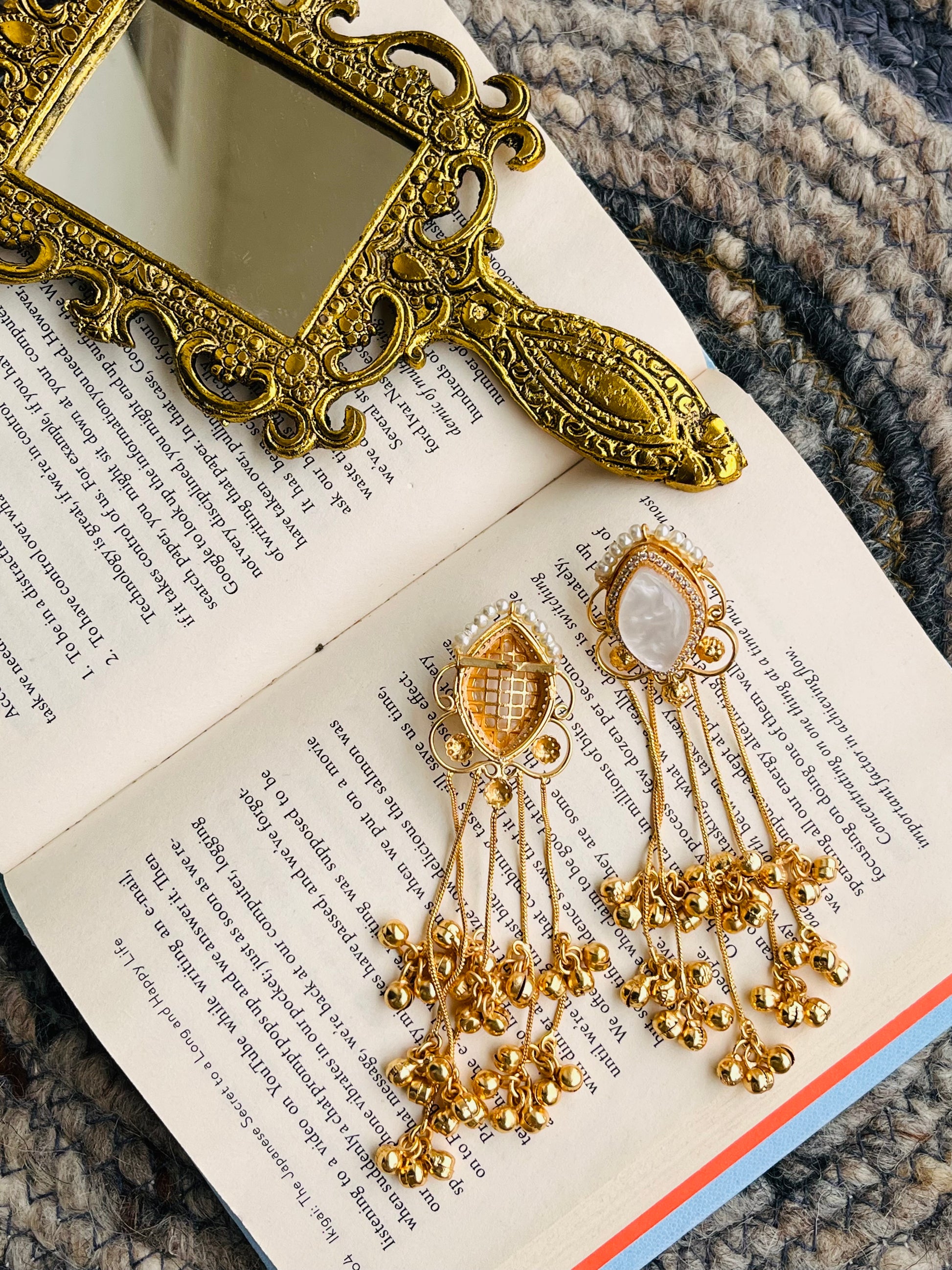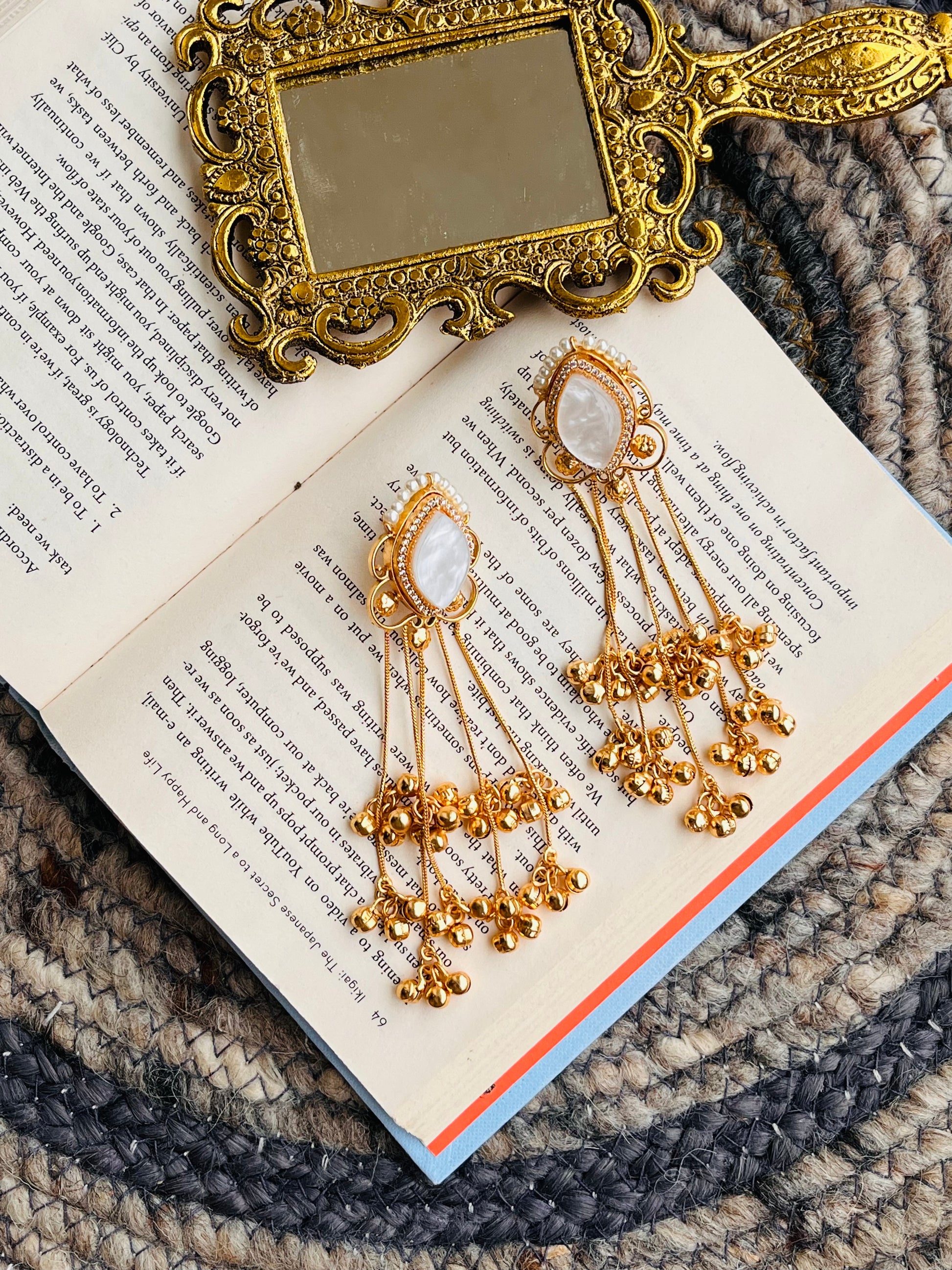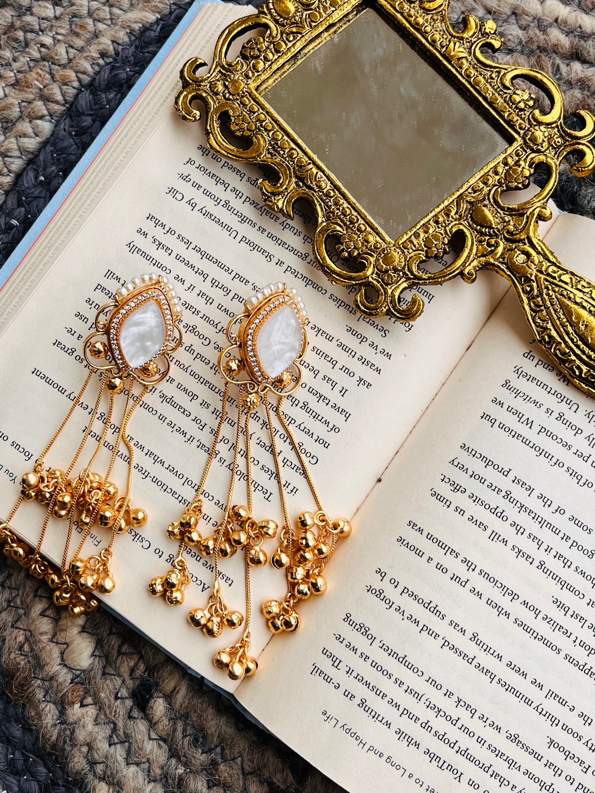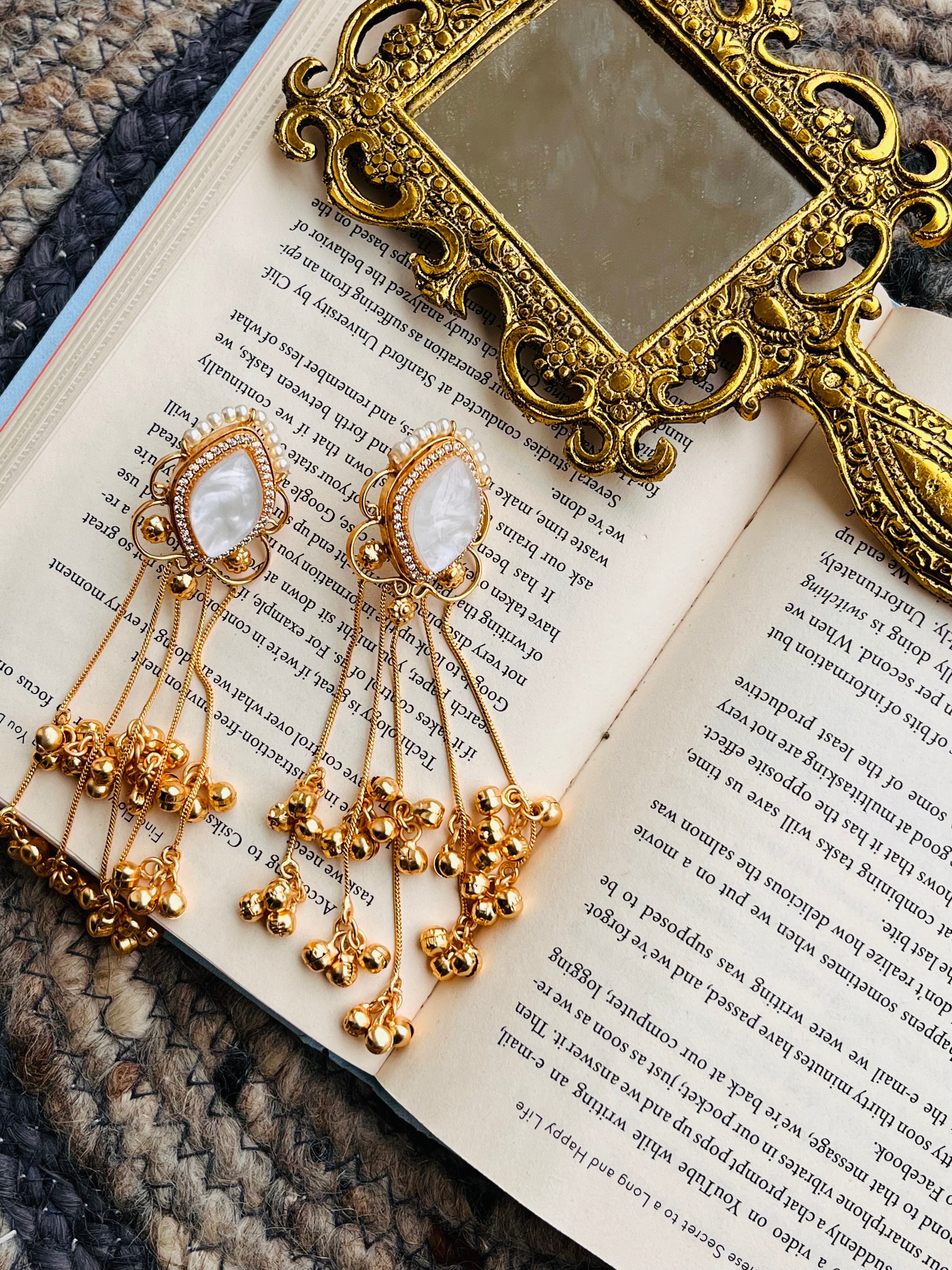 White Stone Gold-Plated Tassel Earrings🦋🦋🦋